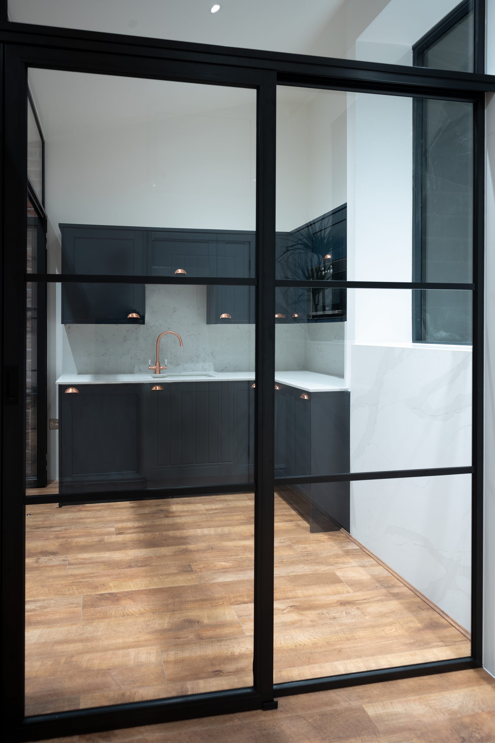 Fixed screens are non-opening glass panels set within our slim aluminium frames, creating elegant room dividers and partitions that allow light to flow between spaces. These screens are available in contemporary and Heritage styles and feature ultra-slim 30mm x 30mm sightlines. They can be installed as standalone features or combined with any of our door systems for complete design flexibility. They are perfect for creating home offices, meeting rooms, or dividing open-plan living spaces.